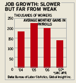 美联储和投资者,尤其是那些抱有降息希望的投资者面临的困境是:在主席本·伯南克的领导下,美联储仍在市场上建立其作为抗击通胀者的信誉。只要通胀仍然是威胁,除非劳动力市场放软给出可信的理由,否则它不能降息。如果就业市场保持火热,它甚至可能不得不加息。因此,对于试图推测政策走向的投资者来说,未来几个月最重要的指示标志显而易见。问题“美联储将何去何从?”归结为“劳动力市场将何去何从?”