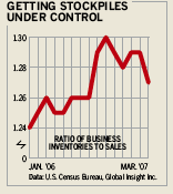 最近的限制,加上消费者和企业需求的韧性,使得库存保持在更舒适的水平。三月份的库存与销售比率回落至七个月来的低点2.7个月。此外,供应管理协会的四月份工厂活动报告显示,自2006年7月以来,报告客户库存过低的受访者比例最大。而在四月份,认为自己库存过多的非制造业者也减少了。