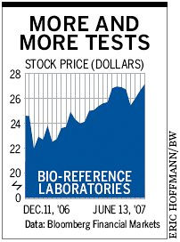 专业测试为生物参考实验室(BRLI)带来了稳定的收益,这是美国第三大临床测试机构。“好消息可能会继续,”田中(Graham Tanaka)说,他是田中成长基金(TGFRX)的经理(该基金持有股票),因为与联合健康集团(UNH)及其他医疗服务提供商的新合同,以及女性健康和癌症诊断的增长。生物参考的“深奥”测试涵盖肿瘤学、遗传学、毒理学和免疫学,占收入的40%,截至4月30日的财政年度收入为2.18亿美元。“核心血液测试的持续两位数增长,加上癌症诊断的50%跃升,应该会增加利润,”田中说。他预计2007年的每股收益为1美元,而市场共识预计为96美分,截止到2007年10月31日的年度。对于2008年,他预计为1.30美元,而市场预期为1.22美元。去年每股收益为84美分。杰富瑞集团(JEF)的亚瑟·亨德森(Arthur Henderson)对该股票的评级为买入,目前股价为27.04,他表示生物参考“在长期增长方面处于良好位置。”