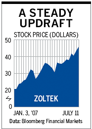对风力涡轮机(即风车)替代能源需求的激增推动了Zoltek(ZOLT )。其股票从12月份的19飙升至7月11日的46.21,这得益于其用于风力涡轮机的商业级碳纤维订单的激增。“风能业务依然非常健康,”信号山资本集团的迈克尔·卡博伊说,他预计Zoltek将从丹麦的涡轮制造商维斯塔斯和西班牙的Gamesa获得新的长期合同。碳纤维有助于增强涡轮叶片的强度。Zoltek还向深海石油钻探公司提供碳纤维,用于其平台的浮力系统。卡博伊表示,Zoltek产品的需求超过供应,这种情况在未来两年内不会改变。他预计2007年的每股利润为72美分,2008年为1.60美元,较2006年的13美分有所上升。CapStone Investments的威廉·格雷戈泽斯基表示,世界风能协会预计未来三到五年风能市场将增长15%,趋势是向更大叶片发展,而碳纤维是必需的。他将Zoltek评为强烈买入。