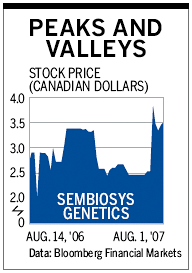 来自红花的胰岛素?这就是SemBiosys(SBS)基因公司正在开发的项目,该公司在多伦多以SBS为交易符号。在6月于芝加哥举行的美国糖尿病协会会议上,该公司展示了植物生产的胰岛素“在物理、结构和生理上与药品级人类重组胰岛素无可区分”,首席执行官安德鲁·鲍姆表示。他说,这些结果验证了植物生产技术在大规模制造人类胰岛素方面的可行性,而这种能力目前供不应求。鲍姆认为,植物在低成本生物制药制造方面提供了前所未有的产能和灵活性,并在资本和商品成本方面提供了最具吸引力的经济效益。SemBiosys利用基因工程和专有技术制造基于蛋白质的药品和非药品产品。鲍姆预计,胰岛素的需求将在2012年上升至16,000公斤,较2006年的6,000公斤大幅增长,当时全球销售额为75亿美元。