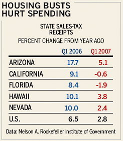 经济学家们对住房衰退对消费者支出的影响存在许多争论。尽管全国数据几乎没有任何负面影响的迹象,但逐州分析显示,在住房市场真正崩溃的地方,支出正在下降。