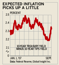 在这种背景下,核心通货膨胀(不包括能源和食品)已经开始下降,这并不令人惊讶。自2006年9月达到2.9%的近期峰值以来,核心消费者价格指数衡量的年度通货膨胀率已稳步下降至8月份的2.1%。从住房到服装再到娱乐,各类商品和服务的价格增长已减缓。最值得注意的是,能源以外的服务通货膨胀率(占核心消费者价格指数的72%且对经济放缓的敏感性较低)已从去年的3.9%下降至8月份的3.2%。