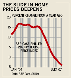 或许最重要的是,导致资产价格下跌的金融冲击从来不会引发通货膨胀。恰恰相反。例如,当2000年科技股泡沫破裂时,美国经济几乎陷入了彻底的通货紧缩;也就是说,不仅是通货膨胀降低,而是价格下跌。在2003年和2004年,消费者商品的价格(不包括能源和食品)连续两年下跌,这是自大萧条以来未曾发生过的。这一次,房价正在下跌,其影响正在重创与抵押贷款相关的证券价格。