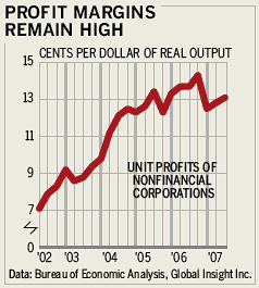 经历了一切, 消费者依然坚持。尽管经历了两年的住房低迷、房价下降的一年,以及2007年缓慢的就业增长,经过通胀调整的消费者支出在前三个季度似乎以约2.7%的年率增长。这低于2006年的3.4%增速,但仍然表现稳健。