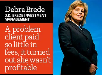 不是每个客户都能成为你的最爱。这就是德布拉·布雷德(Debra Brede),一位投资顾问和位于马萨诸塞州尼德汉的五人D.K. Brede投资管理公司的老板,曾经对她最挑剔的客户之一的看法。20年来,这位女士每次约见时都带着装满与她投资相关的每一张纸条的袋子——代理声明、年度报告、股息通知——期待布雷德逐一与她讨论。布雷德确实这样做了。她想提供优质服务,而这位女士的账户金额为100万美元。这对布雷德的公司来说是一个可观的数额,该公司每年的收入约为170万美元。