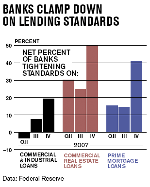 对广泛借款者可用信贷的减少是一个原因。研究表明,贷款标准的收紧往往会在经济放缓之前出现。根据美联储最新的高级贷款官员调查,七月至十月间,银行显著收紧了各种商业和消费贷款的贷款标准。银行家们提到经济前景不太乐观且更加不确定,许多人指出流动性较差的二级市场和更大的风险厌恶。