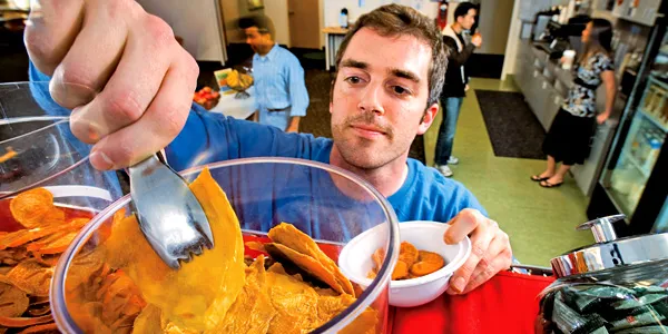 多年来,公司健康警察——那些痴迷于降低不断上涨的健康保险费用的人——一直专注于针对肥胖的办公室员工,提供补贴的胆固醇药物、免费的健身房会员资格和新世纪健康教练。但如果办公室的自动售货机里满是糖果、可乐和薯片——或者每次会议上都提供饼干和蛋糕,这一切又有什么用呢?“我觉得我们没有足够积极,”雅马哈的人力资源主管卡罗尔·贝克说。但让这些“垃圾食品爱好者”戒掉并不容易。“人们还没有准备好放弃一切,”她说。