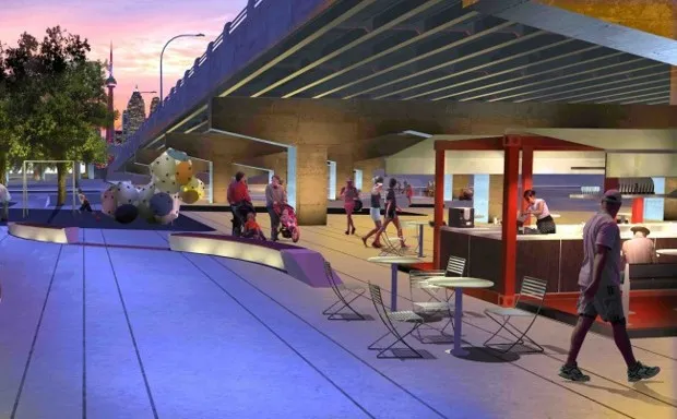 地下公园的渲染图。感谢多伦多水岸高架高速公路穿过世界各地的城市。在最佳情况下,它们使进入和穿行城市变得极其容易;在最糟糕的情况下,它们则使社区隔离和孤立。在这两个极端之间,有着巨大的潜力。这些高架桥下的空间往往被低估——或者以非法或不受欢迎的方式利用。城市开始利用这些死空间作为公共领域的可用部分。这些项目突显了城市和社区如何利用高速公路下方的空间。