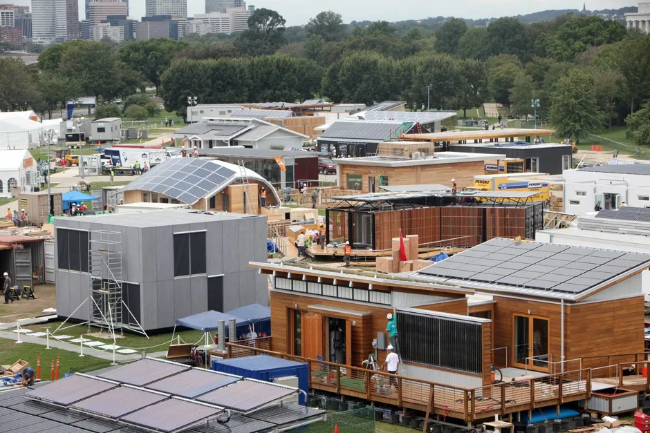 数百名大学建筑、设计和工程专业的学生正在潮汐盆地建造一个巨大的太阳能村,这是一个夹在FDR和托马斯·杰斐逊纪念碑之间的未来主义示范场地。实际上,这也是能源部的另一个项目,尽管可以说是一个更有益的项目。这个名为太阳能十项全能的双年活动,吸引了20个大学团队来到这里,设想可负担的净零住房可能是什么样子(并测试——因为这是一个竞争——这样的房子是否真的能洗衣服并提供真正的热水淋浴)。