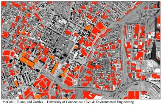 “在每个项目的基础上说,‘哦,这个项目因为这个而建了一个停车场’是很容易的,”克里斯·麦卡希尔说,他是康涅狄格大学土木与环境工程的博士候选人。“我们的想法是从整个城市的规模来看。当一个城市逐个项目发生这种情况时,会发生什么?”