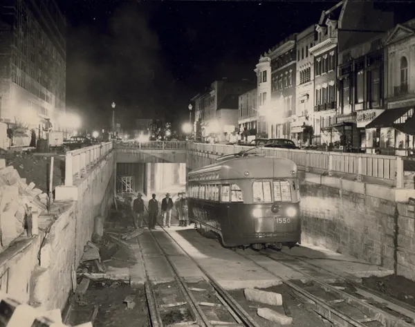 杜邦地下华盛顿特区的原始电车系统,像许多其他美国城市一样,在1960年代初被拆除,其路线大部分被公共汽车取代。(在城市的地铁系统第一阶段开放之前,还要再等15年。)虽然大多数旧电车在地面轨道上运行,但在1940年代,系统中整合了几个隧道,其中最大的一个位于城市的一个焦点正下方:杜邦圈。