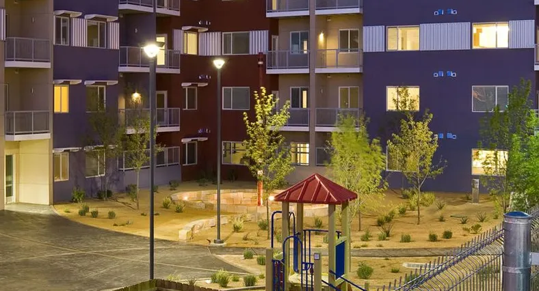 在阿尔伯克基,另一座LEED铂金建筑正在将经济适用公寓与可靠的交通选项相结合,帮助低收入居民节省能源、交通和住房费用。银色花园拥有66个混合收入的住宅,由新墨西哥州支持性住房联盟与开发商罗梅罗·罗斯(乔纳森罗斯公司的附属公司)合作建造。融资得到了该市3000万美元的劳动力住房信托基金和州抵押贷款融资局的支持。