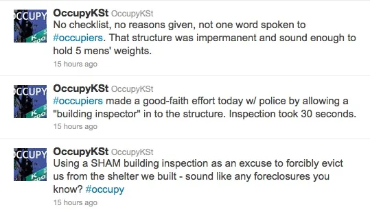 以下是周日下午在公园发生的事情,由 OccupyKSt 推特叙述: