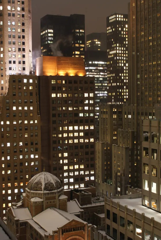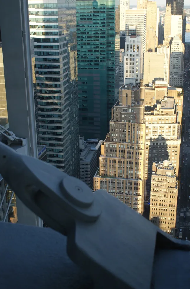 在我从高处俯瞰的那些时刻,最明显的是天际线或特定社区视野中存在的历史层次,当你离它们相对较近时,这些层次是非常有趣的。这就是为什么有两个地方我没有拍摄过,虽然永远不要说永远,但我倾向于远离像“岩石顶端”和帝国大厦这样的地方。像这样的地方非常高且非常容易到达,因为它们对任何人都进行了市场推广,游客、当地人,任何支付票价的人都可以上去——我几乎认为这些地方太简单了。我所做的很多事情是寻找那些更难进入的地方,以及我必须与某人交谈、解释项目并获得访问权限的地方。因为,首先,我想分享那些视角。这些是我想在网站上捕捉和分享的视角,因为那些是任何拥有智能手机的人无法轻易捕捉到的视角,因为他们正在参观帝国大厦。数以百万计的人这样做。在某种程度上,我的最佳拍摄点是我尝试从建筑物中拍摄,很多我所看到的都是城市,而不是高得太离谱,以至于我看到的实际上是超越城市的东西。所以你真的上得很高,看到的是新泽西州、长岛和康涅狄格州。对此没有什么错,这些都是令人叹为观止的景色。但让我着迷的是,当我在30到50层,甚至可能60层之间时,当我向外看时,我看到的大部分都是周围建筑的细节。这正是你看到历史层次的地方,你看到各种建筑风格的多样性、高度的多样性、建筑物不同体量的多样性。