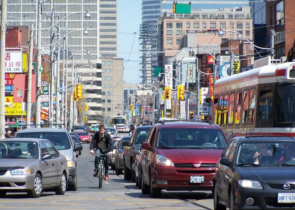 多伦多的邓达斯街——拥挤着商店、餐馆和顾客——是一个“遭受”车辆拥堵的街道的好例子。邓达斯街每个方向有一条行车道,还有一条可供停车的车道,即使在高峰旅行时间,幸运的是,多伦多对此无动于衷。税基太有价值,无法拆除建筑物和拓宽街道。佛罗里达州海边中央广场附近的30A公路因车道宽度狭窄和退让距离浅而导致的日常交通减速,使海边作为零售和社交目的地的价值更高。纽约的格林威治村因其持续的车辆拥堵而获得了经济收益。在最近的一项分析中,佛罗里达大西洋大学的埃里克·邓巴赫报告称,每10%的交通延误增加与一个地区的国内生产总值增加7%相关。