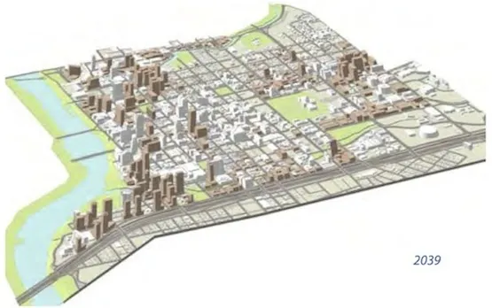 到2039年,可以重新开发以实现更大密度的地块可能会将该地区转变为这样: