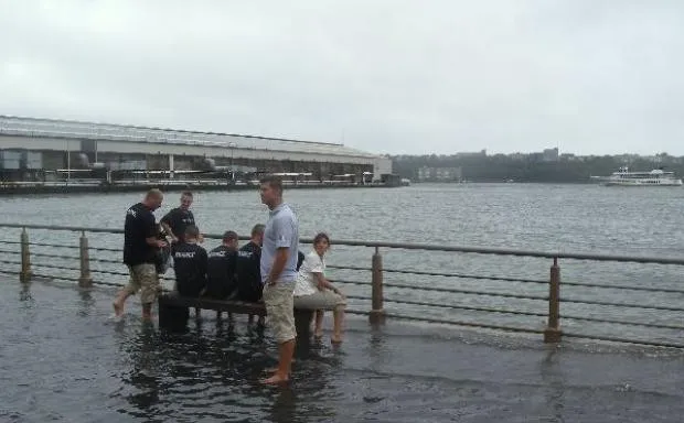 上图:2011年8月飓风艾琳期间,洪水泛滥的哈德逊河公园中的人们。图片由 吉姆·亨德森 提供。