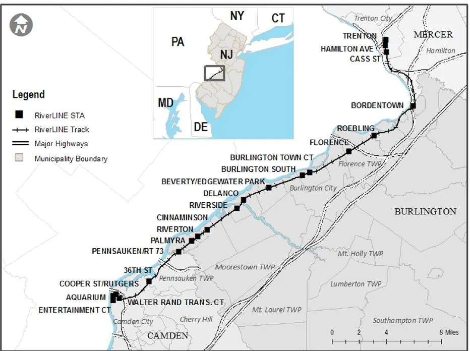 Flickr/凯尔·格雷丁新泽西交通局的河线于2004年开通。该线路被认为是轻轨,但也在某种程度上充当通勤铁路,服务于特伦顿-卡姆登走廊的20个车站。该州资助的项目建设成本约为11亿美元,主要通过对主要两个城市及沿线地区预期的经济利益向公众出售。