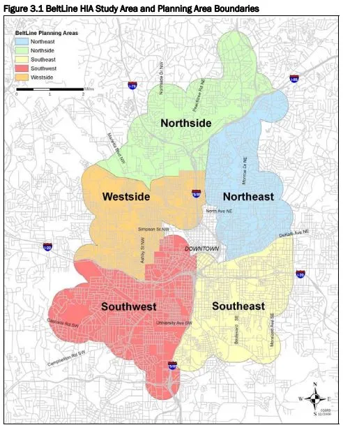 像BeltLine这样的大型项目必然会对公共健康产生一些影响。该项目将把亚特兰大市中心附近22英里的废弃铁路改造成2100个公共公园、33英里的步行和自行车道、22英里的公共交通以及6500英亩的住宅和商业开发。超过200,000人生活在BeltLine的直接影响区域内: