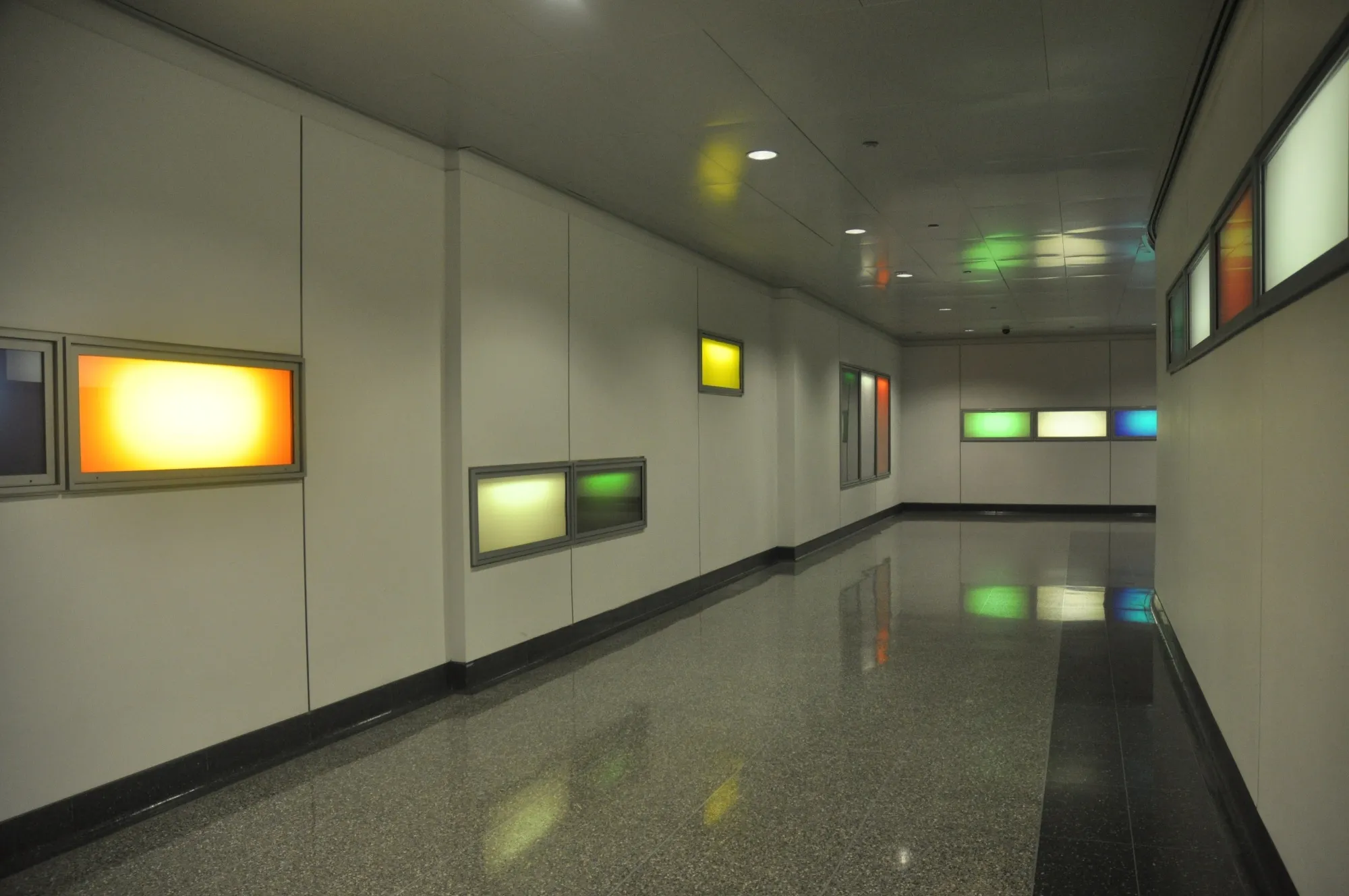 我最近才发现这个地下通道,连接49街的N、R和Q地铁站与洛克菲勒中心主建筑群。你可能身处任何地方或无处可去。几位穿高跟鞋的匿名办公室工作人员在大理石地板上轻声走过。偶尔的对话回响并渐渐消失。没有手机信号。走廊似乎无尽延伸,像是一场现代主义的狂热梦境。