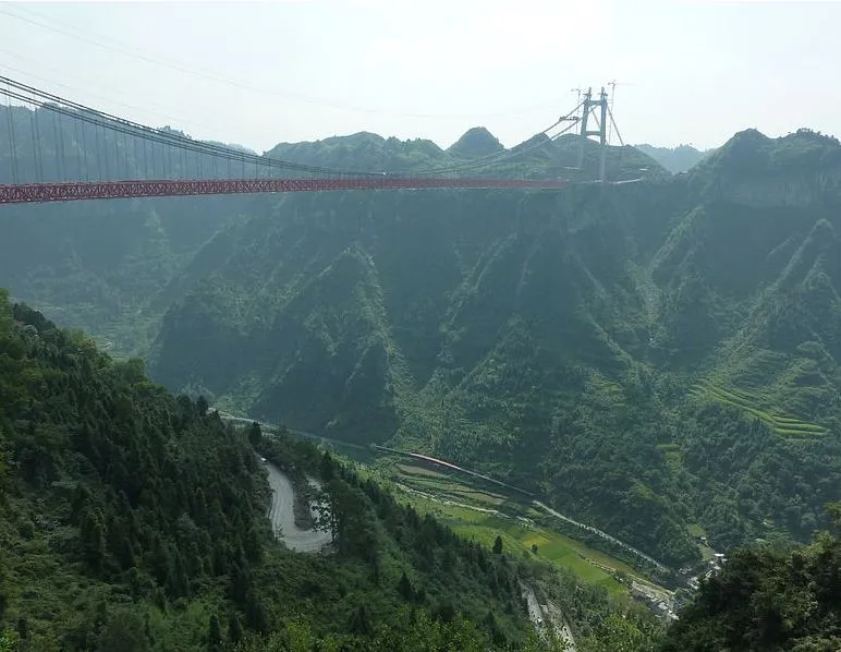 世界上最长的桥仍然是位于日本南部的 明石海峡大桥(长6,532英尺),但 Aizhai 桥具有一种极致的 WTF 特质,使其在竞争中脱颖而出。这座高耸的钢结构似乎并不属于这片田园风光。下面的居民必须时刻保持警觉,因为一块碎石或被丢弃的垃圾可能会从桥上掉落,砸到他们。看看这个怪物: