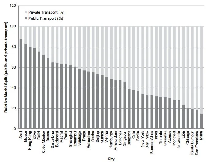 我们进一步得出结论,通过道路定价和汽车购置税等政策对汽车使用和拥有的监管也对公共交通乘客量产生了积极影响。在实施了这种有效监管的城市中,汽车使用量平均下降了20-30%,而公共交通使用量则以类似比例上升。