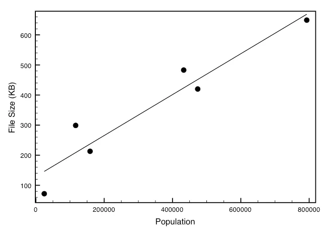 使用一个 小数据集,包含一些在《模拟城市3000》中构建的城市的人口规模和文件大小,我检查了复杂性如何随人口规模变化。结果发现,城市复杂性与人口规模呈线性关系: