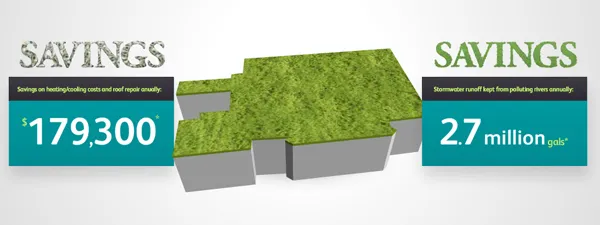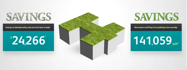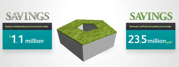 每年防止141,059加仑的雨水径流污染附近水源节省$24,266的供暖和制冷费用