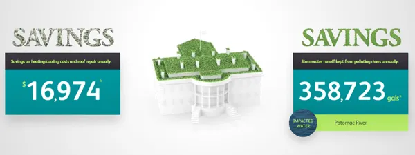 每年防止358,723加仑雨水径流污染波托马克河节省$16,974的供暖和制冷费用