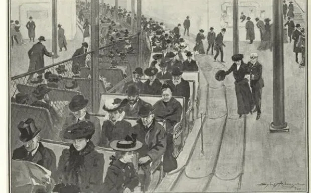 解决这个问题的最新提案现在提交给估算委员会,已转交给快速交通委员会。它通常被错误称为“移动人行道”。实际上,它是一种移动平台或连续列车的系统。像[铁路大亨]科尼利厄斯·范德比尔特、斯图伊文特·费希[伊利诺伊中央铁路总裁]、E.P.里普利[阿奇森、托皮卡和圣菲铁路总裁]等人对这一新计划感兴趣,工程师们不仅认为它可行,而且极其经济。移动平台实际上是对在芝加哥和巴黎博览会上运营的连续列车的改进,这些列车以良好的速度和绝对的舒适度安全地运送了数百万人。