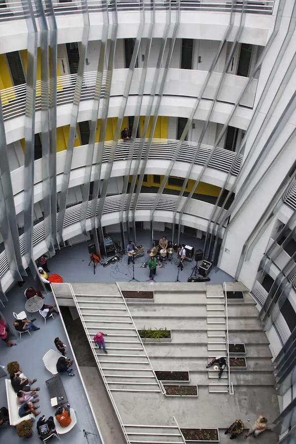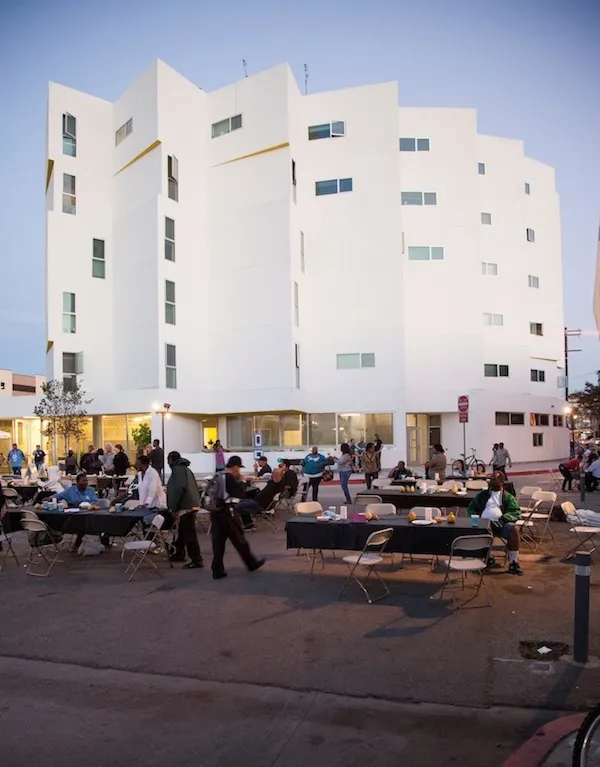 大约100名曾经无家可归的人住在上述Maltzan设计的Carver公寓中,该公寓于2010年完工。建筑外观呈锯齿状,具有保护性,但内部有一个宽敞的阳光明媚的庭院,提供安全的开放空间。