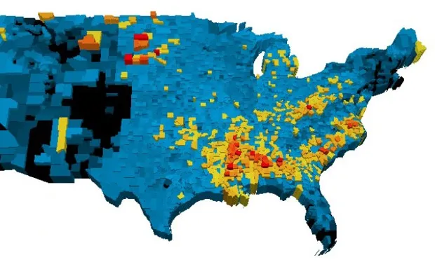 Gallos表示,他团队对数据的分析显示肥胖的地理传播迅速,主要集中在阿拉巴马州的格林县。他说,这个地区是肥胖的“热点”。但令人震惊和担忧的是,肥胖率如何在长距离上传播,以及这种现象发生的速度和普遍性。