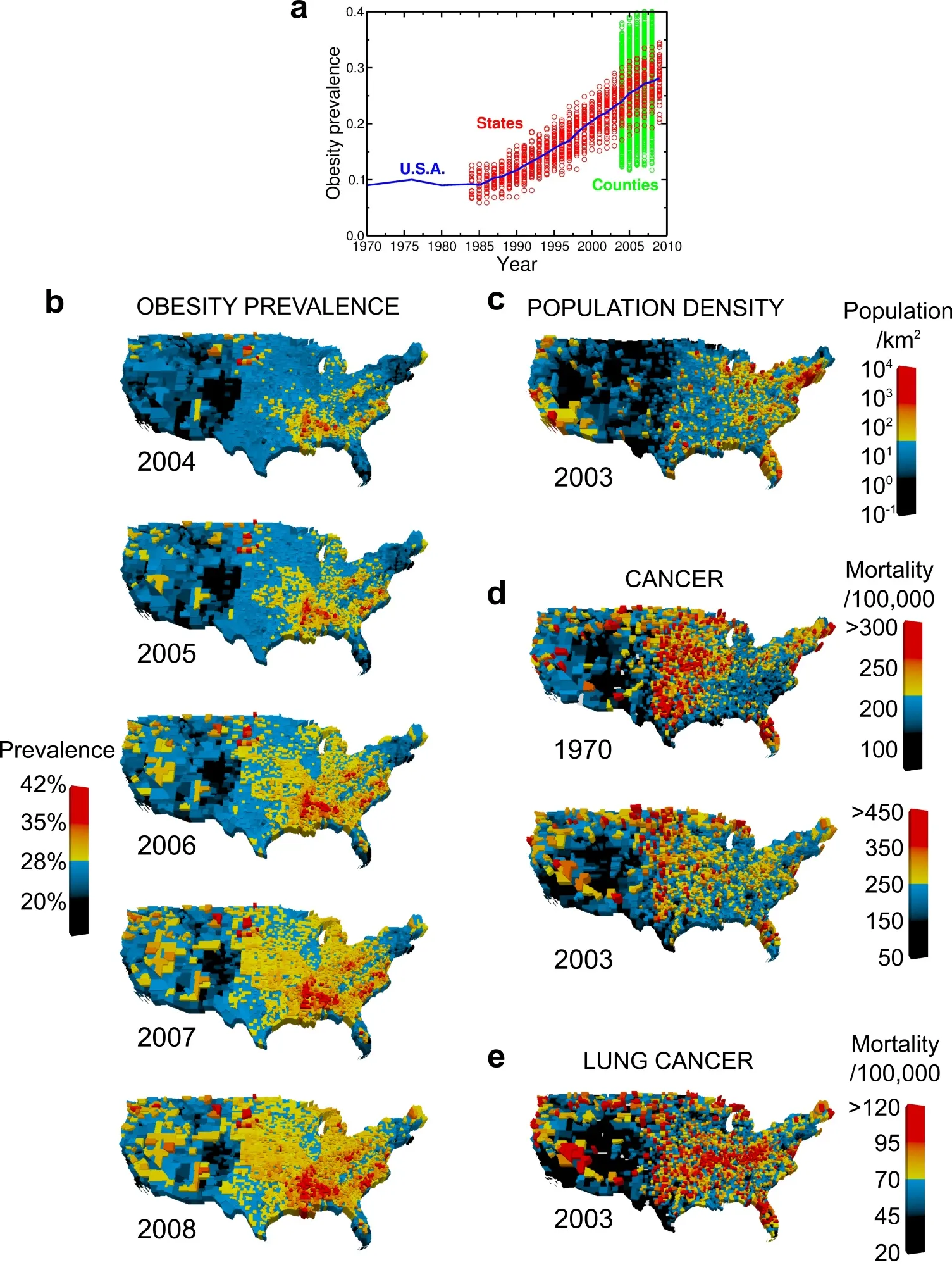 这组科学家最近在一篇名为“肥胖的空间传播中的集体行为”的论文中发表了他们的研究结果。他们使用统计物理方法分析数据,发现“流行病的地理与食品营销和分配模式之间存在相关性”,并建议“个人习惯对传播模式的影响可能微不足道。”