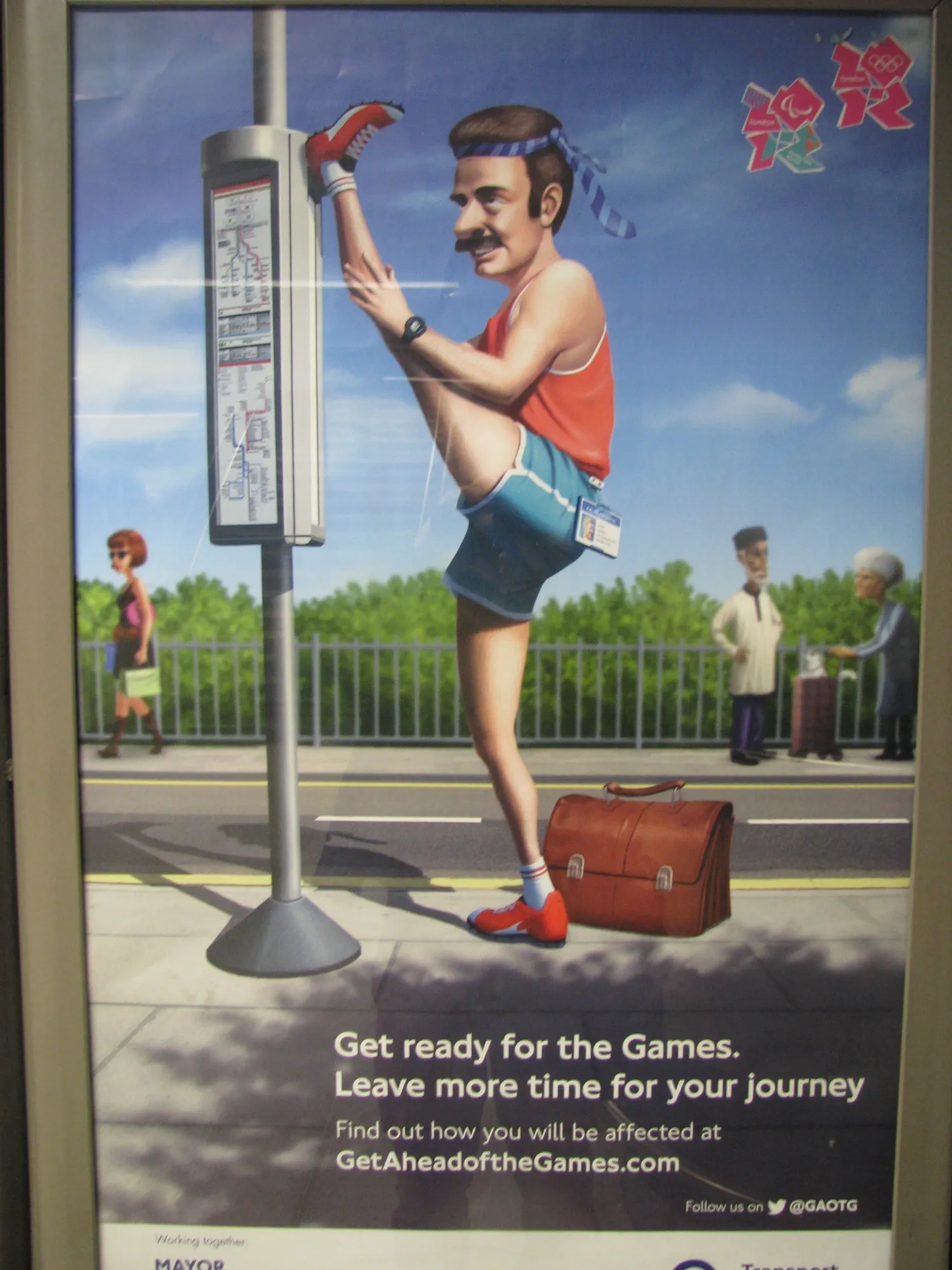 首先是广告牌。这些由奥林匹克旅行机构支付的 提前了解比赛,这些广告警告伦敦人,他们的城市交通网络将在奥运期间超负荷运转,他们应该考虑替代的旅行路线。这些信息的潜台词是什么? – “走开。请走开。”