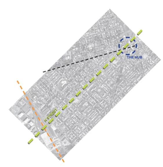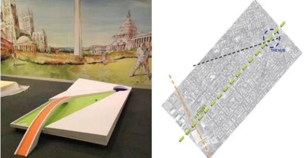 当地华盛顿特区公司 Inscape Studio 得到了一个开发商的赞助,该开发商在华盛顿特区最新的夜生活走廊H街NE上进行一个大型住宅项目(同样的酒吧有迷你高尔夫球场)。Inscape 抽象化了该地区的街道网格以创建他们的洞。玩家从代表走廊一端的联合车站高架桥的橙色桥上开始击球,并在代表两条对角线交叉口的紫色圆圈处掉头。