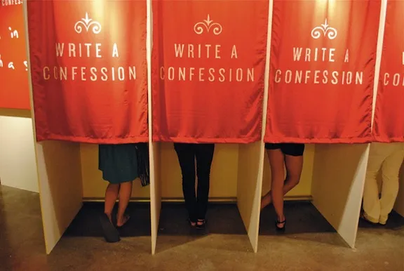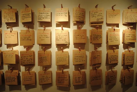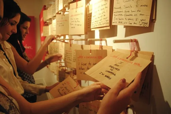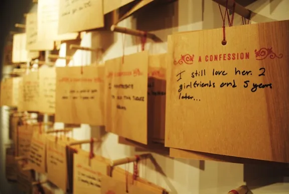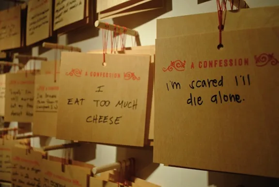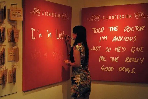 最终的现场展览将持续到8月12日,既坦率又调皮,同时又真诚。事实证明,对于我们所有的私人恐惧,很多人都有关于相似过失的忏悔。张说,到目前为止,其中超过一半的忏悔与性、单相思、心碎、渴望和孤独死亡的恐惧有关。