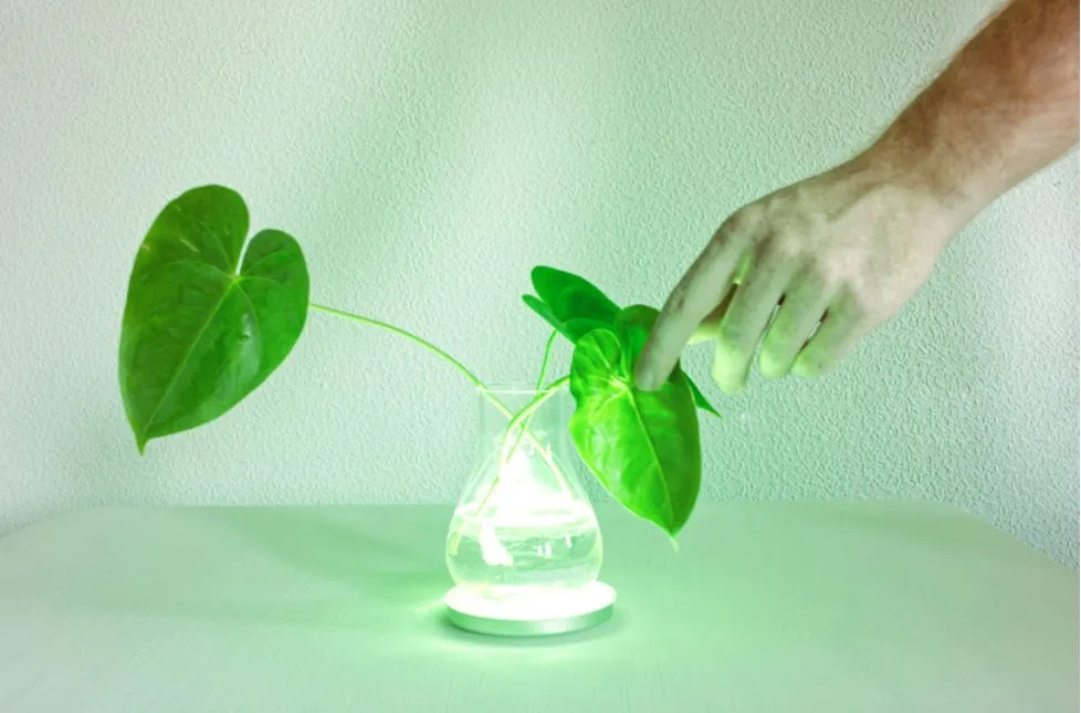 那么你确实是一个特别的人,可能会喜欢来自斯图加特设计师维克托·科尔比的这件基于光的艺术作品。“光环”系列的灯具有透明的水瓶,对触摸非常敏感。轻轻一碰你最喜欢的叶子,叮!灯就亮了。把手指放进水中搅动一下,你可以改变隐藏的LED灯的强度和颜色,就像把食用色素混入水中一样。