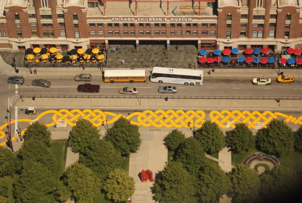 斯蒂德·泰勒如果你最近去过芝加哥的海军码头,你可能注意到它全身都是纹身。北街大道上的沥青上有一条蜿蜒的黄色纹身,似乎是从迈克·泰森的脸上滑落下来的(更确切地说,杰西卡·兰格的手腕)。这是怎么回事呢?