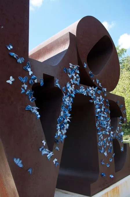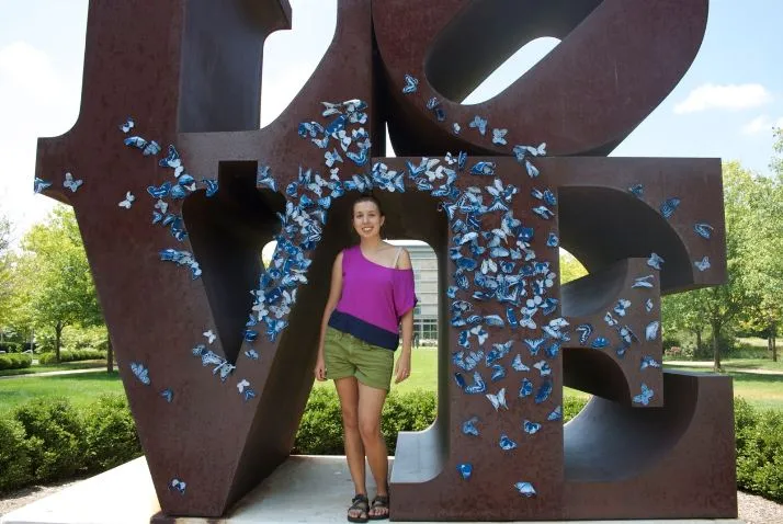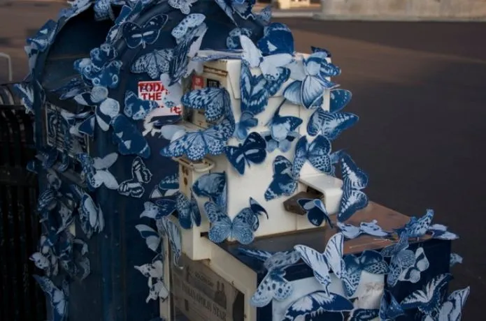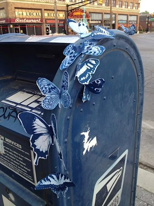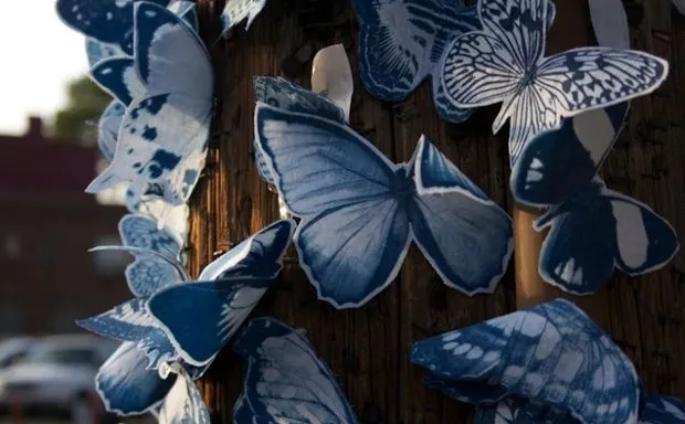 塔莎·刘易斯如果你最近在 印第安纳波利斯,你可能注意到一些 塔莎·刘易斯心爱的宠物在外面游荡。这位22岁的雕塑家一直在悄悄地将她的布制蝴蝶群移动到不同的公共场所,将门、报纸箱甚至罗伯特·印第安纳的雕像变成突如其来的昆虫狂欢。
