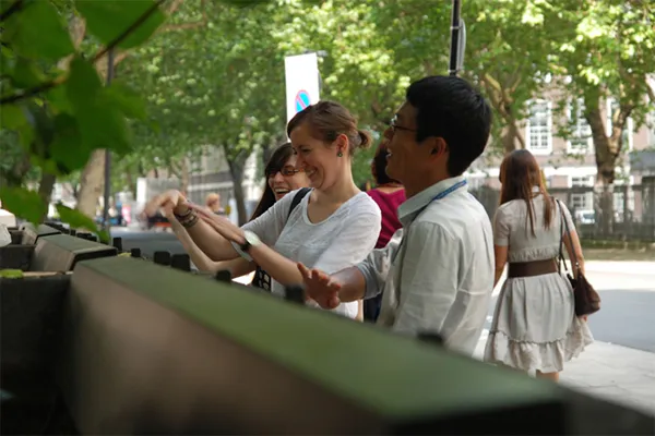 她几乎复活了马莱特街花园一侧的栏杆,这是一个小型的布卢姆斯伯里花园,直到50年代初被一所大学购买。幻影栏杆 使用运动传感器和扬声器播放一根棍子沿着铁栏杆滑动的熟悉节奏,声音根据路人的速度和距离进行调整。