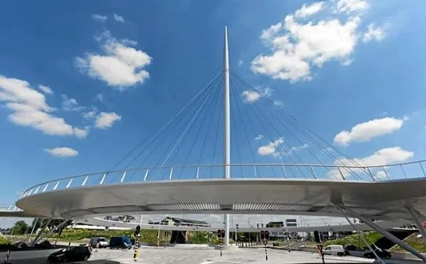 那么,真正尊重骑自行车的人在实践中是什么样的呢?一个表现就是 优雅的新霍芬环,一个“漂浮”的自行车环形交叉口,最近在荷兰埃因霍温开幕。悬挂在道路上方,这个环形交叉口为骑自行车的人提供了一条完全独立的高速公路通道。这个环形交叉口也很美观,中央柱设计成一个灯塔,指示社区的入口。