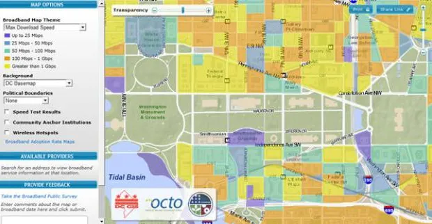 华盛顿特区首席技术官办公室于周五推出了“新改进”的互动宽带地图版本,允许用户以明亮、友好的颜色查看互联网连接数据——这是该办公室收集数据以帮助增加访问的总体目标的一部分。