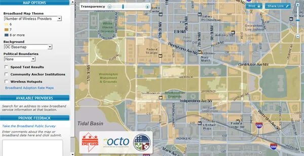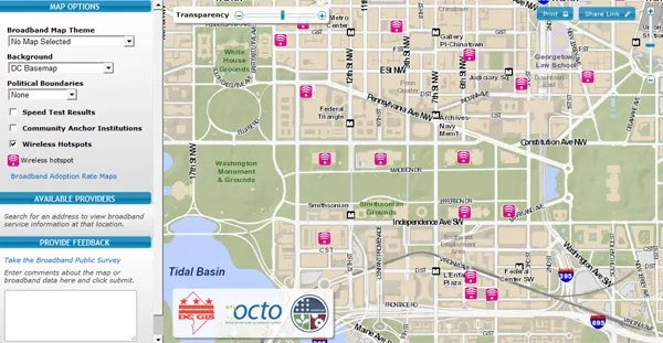 新的宽带网络地图是协作的,并与全市的社区支柱机构、公共WiFi接入点和来自华盛顿特区个人的调查结果互动。用户可以打印地图、分享链接并通过宽带使用调查和测试您的速度工具在华盛顿特区内。
