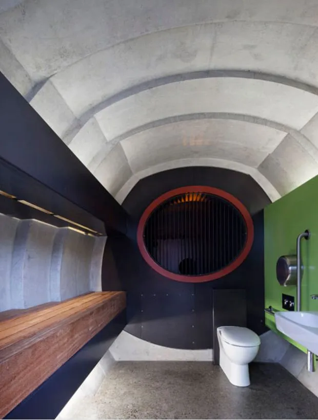 你有没有想过约拿在那条鲸鱼里试图满足自然需求时的感觉?你可以通过走进这些看起来像在惠灵顿Kumutoto区徘徊的深海怪物的公共厕所来大致了解一下。奇怪的洗手间是由太平洋建筑事务所设计的,他们写道: