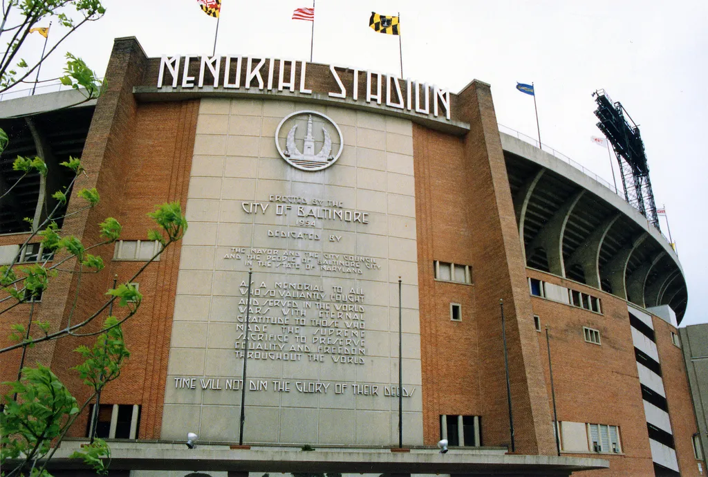 加拿大足球联盟的特许经营权在1994年和1995年在纪念体育场比赛,当NFL的克利夫兰布朗队迁移到巴尔的摩时,他们离开了前往蒙特利尔。新命名的乌鸦队在纪念体育场安营扎寨,但显然球队希望尽快搬到新地方。纪念体育场与克利夫兰的设施相似,这也是导致老板阿特·莫德尔最初迁移他的布朗队的原因。州和市同意在市中心为球队建造一个新家,而乌鸦队则在此忍耐了两年。