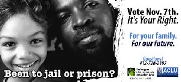 匹兹堡年轻选民联盟和宾夕法尼亚州ACLU希望在2006年 投放这些公交广告,以教育前罪犯关于他们的投票权利。阿勒格尼县港务局拒绝了他们,理由是只接受商业广告。ACLU能够找到相反的例子。最终,去年,美国上诉法院裁定港务局因拒绝广告而侵犯了该团体的言论自由权利 因为其观点。 [PFD]