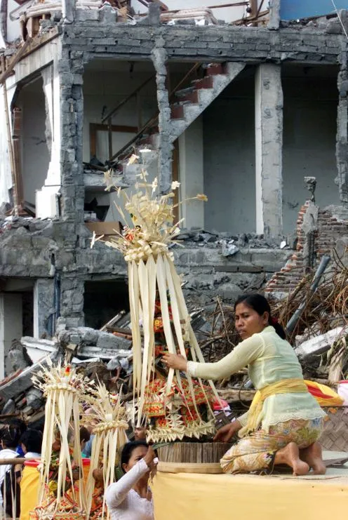 巴厘岛女性在被毁的萨里俱乐部前准备一场名为Tawur Agung的净化仪式。照片由Beawiharta Beawiharta/路透社提供用尿液来纪念死者是一种晦涩的习俗吗?如果不是,那么在被拆除的萨里俱乐部发生的事情就有点不尊重。这个前巴厘岛夜总会在2002年双重爆炸袭击中被杰马阿伊斯兰武装分子夷为平地,附近的Paddy’s Bar也遭到袭击;超过200名游客和印尼人失去了生命。在Paddy’s外面竖起了一座鲜花装饰的纪念碑,但由于房地产纠纷,萨里地块至今仍是一个垃圾覆盖的灾区。