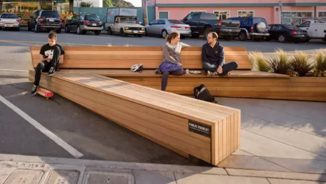 考虑到人们确实与他们房子前面的停车位有这种关系,如果我们让他们做一些其他的事情而不是停车呢?一些紧凑的社区已经开始在停车位上设置自行车棚或露台,只要合理比例的邻居同意。
