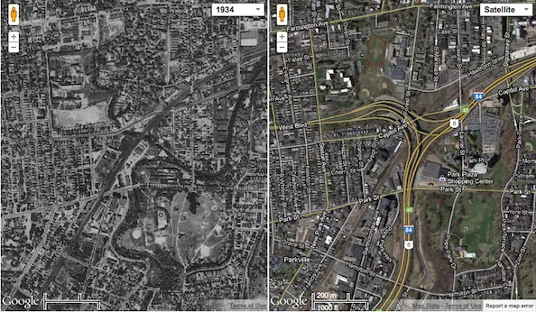 豪瑟和三一学院的历史学家杰克·道赫提在这个项目上合作,作为 一个公共历史互联网档案,旨在教导康涅狄格州的学生和居民了解学校和住房边界,特别是在哈特福德,如何在过去一个世纪中重新划定生活。他们的数字制图工具在国家人文学科基金会的资助下构建,讲述了 红线、 种族和 收入变化在城市中随时间的变化。但这些州级航拍照片的比较似乎是最引人注目的。